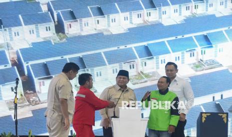 REPUBLIKA.CO.ID, BOGOR -- Presiden Prabowo Subianto menyerahkan kunci rumah kepada perwakilan penerima KPR FLPP pada acara akad massal KPR Sejahtera FLPP dan serah terima kunci di Perumahan Pesona Kahuripan 10, Cileungsi, Kabupaten Bogor, Jawa Barat, Senin (29/9/2025).